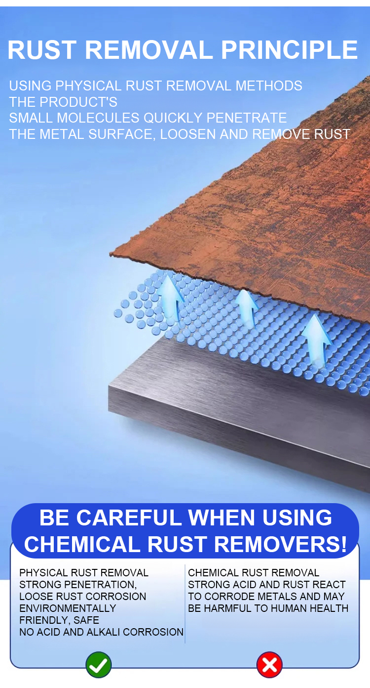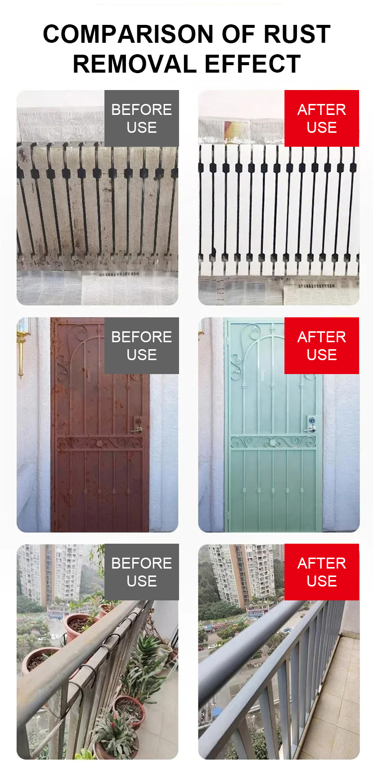 The ultra-powerful steel rust remover not only removes rust but also eliminates dirt, restoring the metal's shine and brightness!